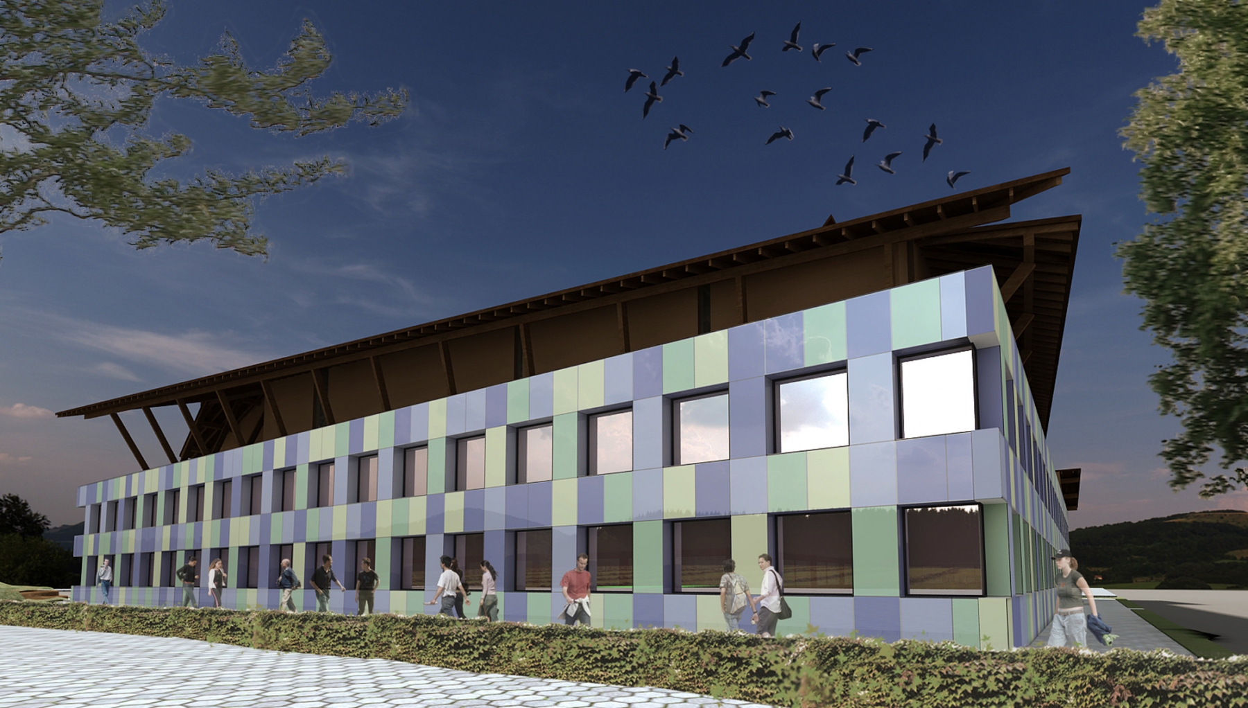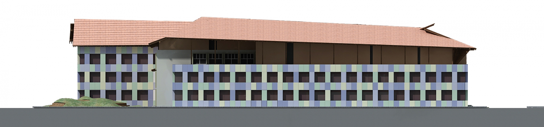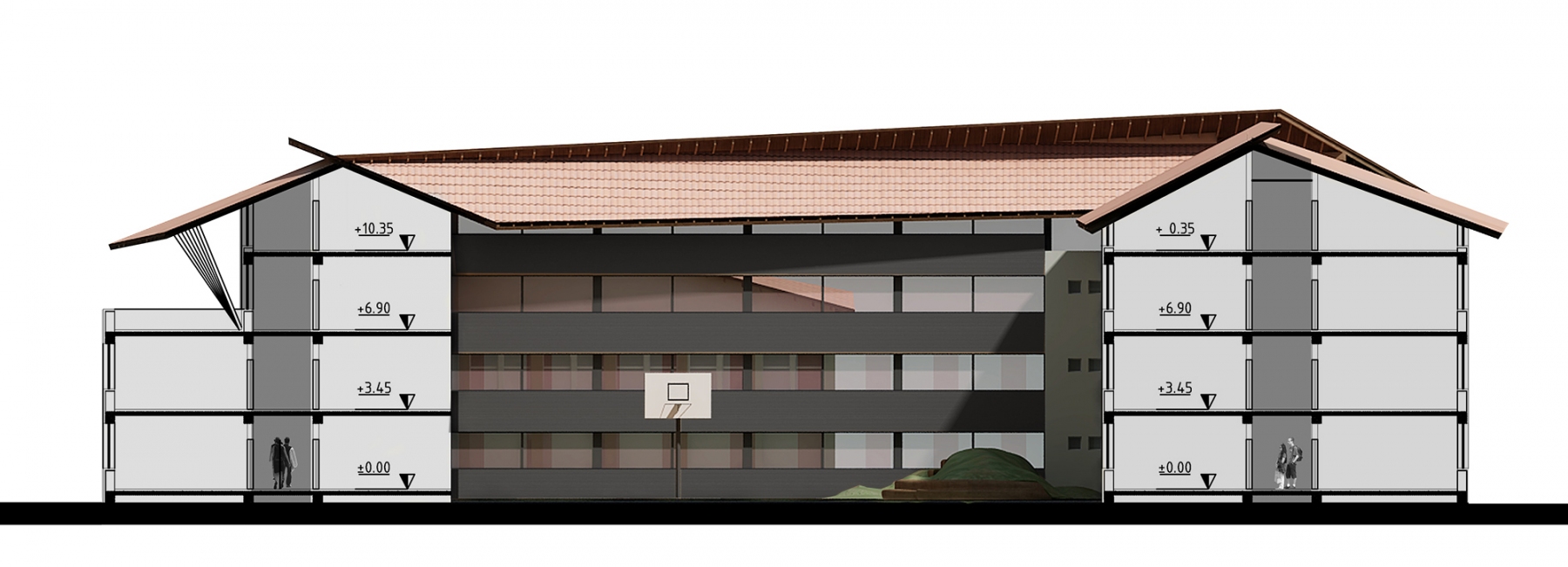 the existing building from the 60s receives new facilities such as a sports hall, workshop spaces, accommodation facilities, a library and others, in a new local program to revitalize and upgrade the curriculum and the educational profile of the place based on current educational and comfort requirements.
