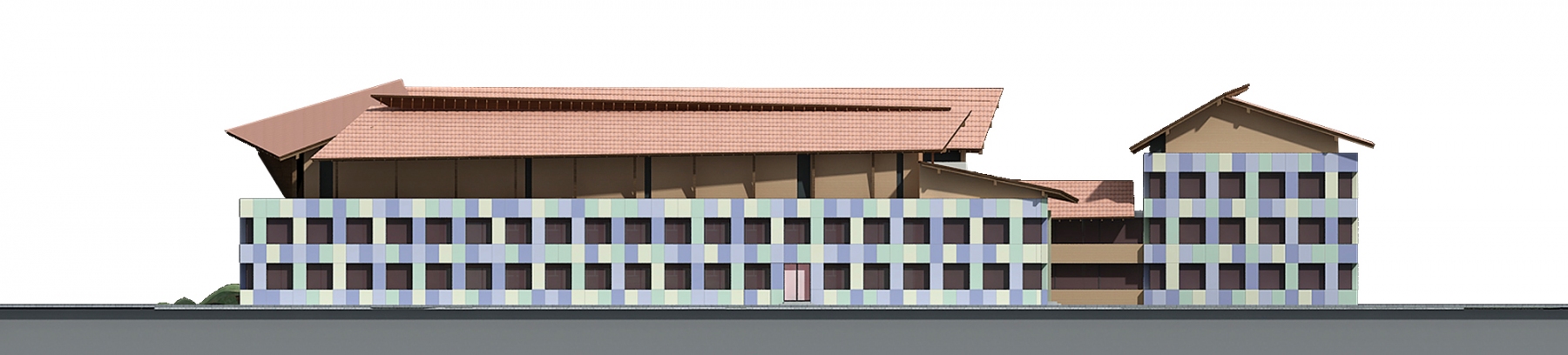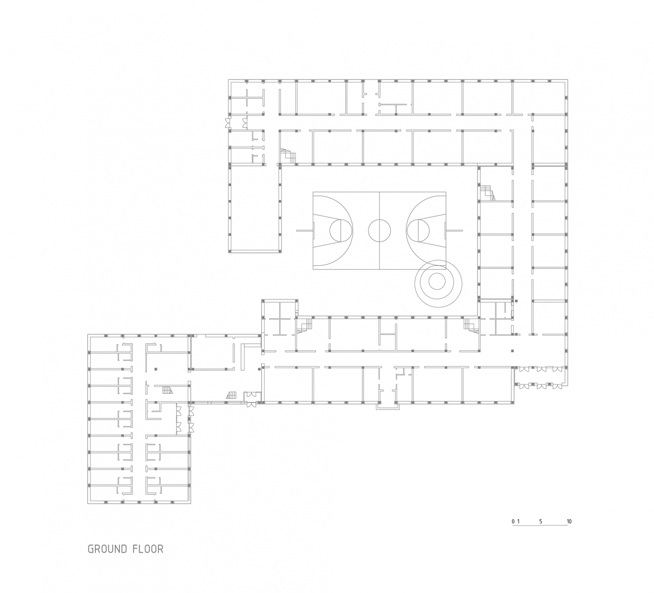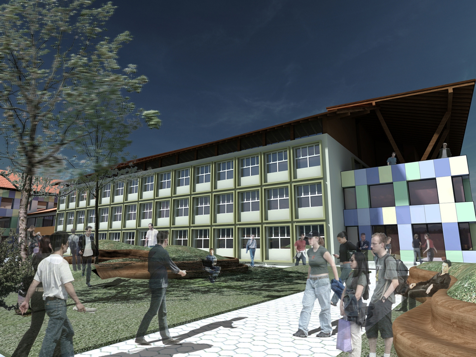 the existing building from the 60s receives new facilities such as a sports hall, workshop spaces, accommodation facilities, a library and others, in a new local program to revitalize and upgrade the curriculum and the educational profile of the place based on current educational and comfort requirements.