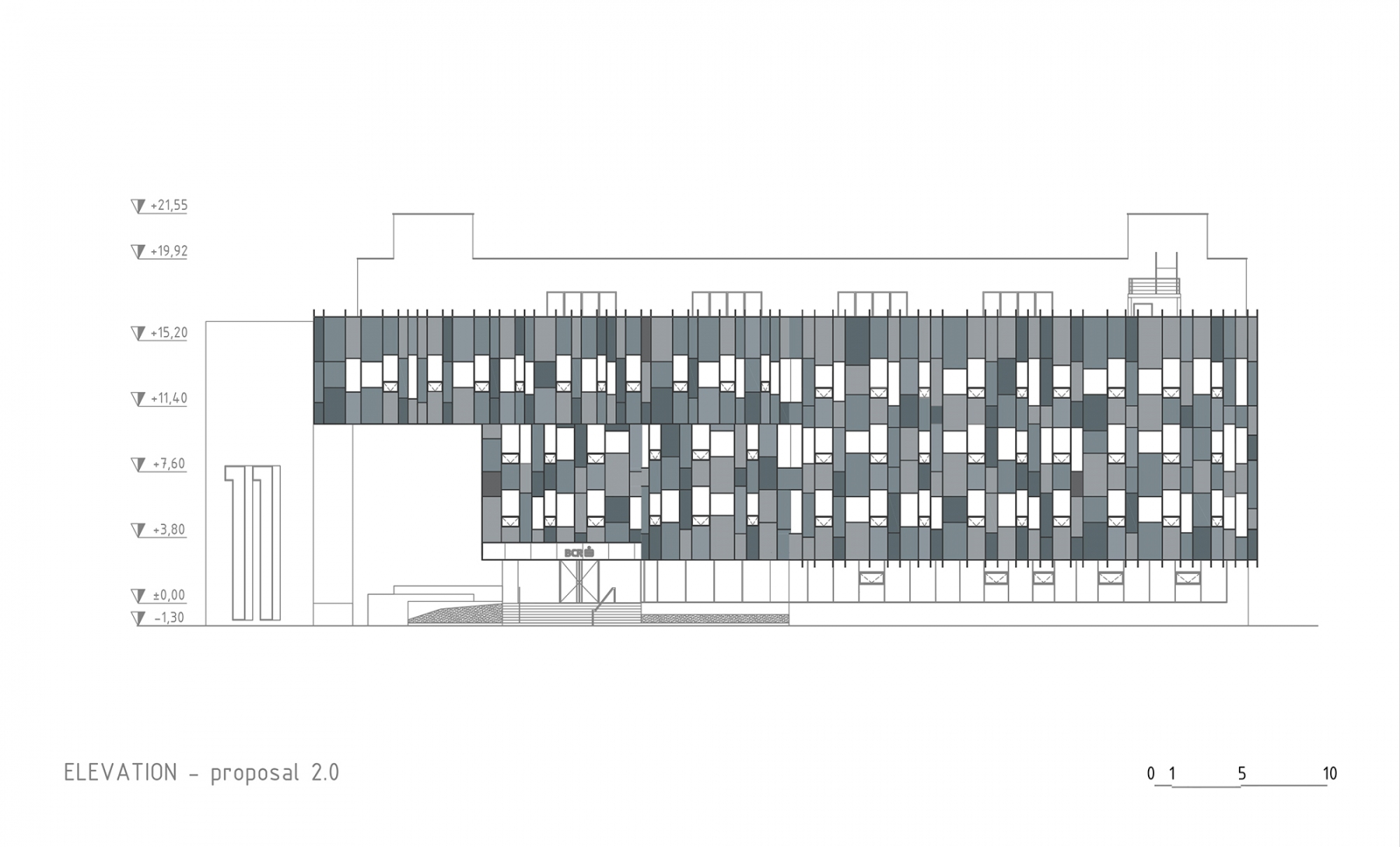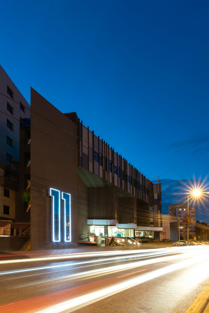 a striking focal point emerges in the form of the “11” element, a macro-scale visual marker with symbolic resonance. by day and night, it stands as an iconic presence, simply yet powerfully representing the building’s postal number.