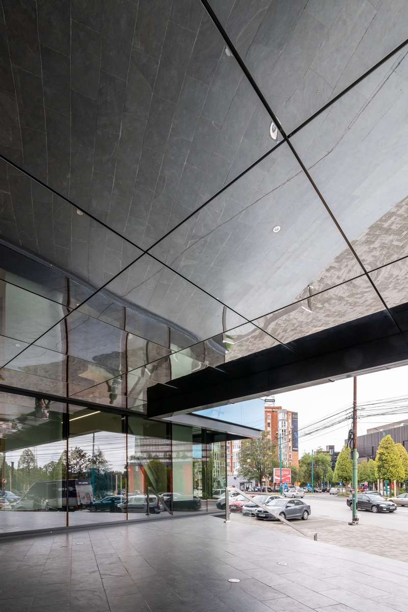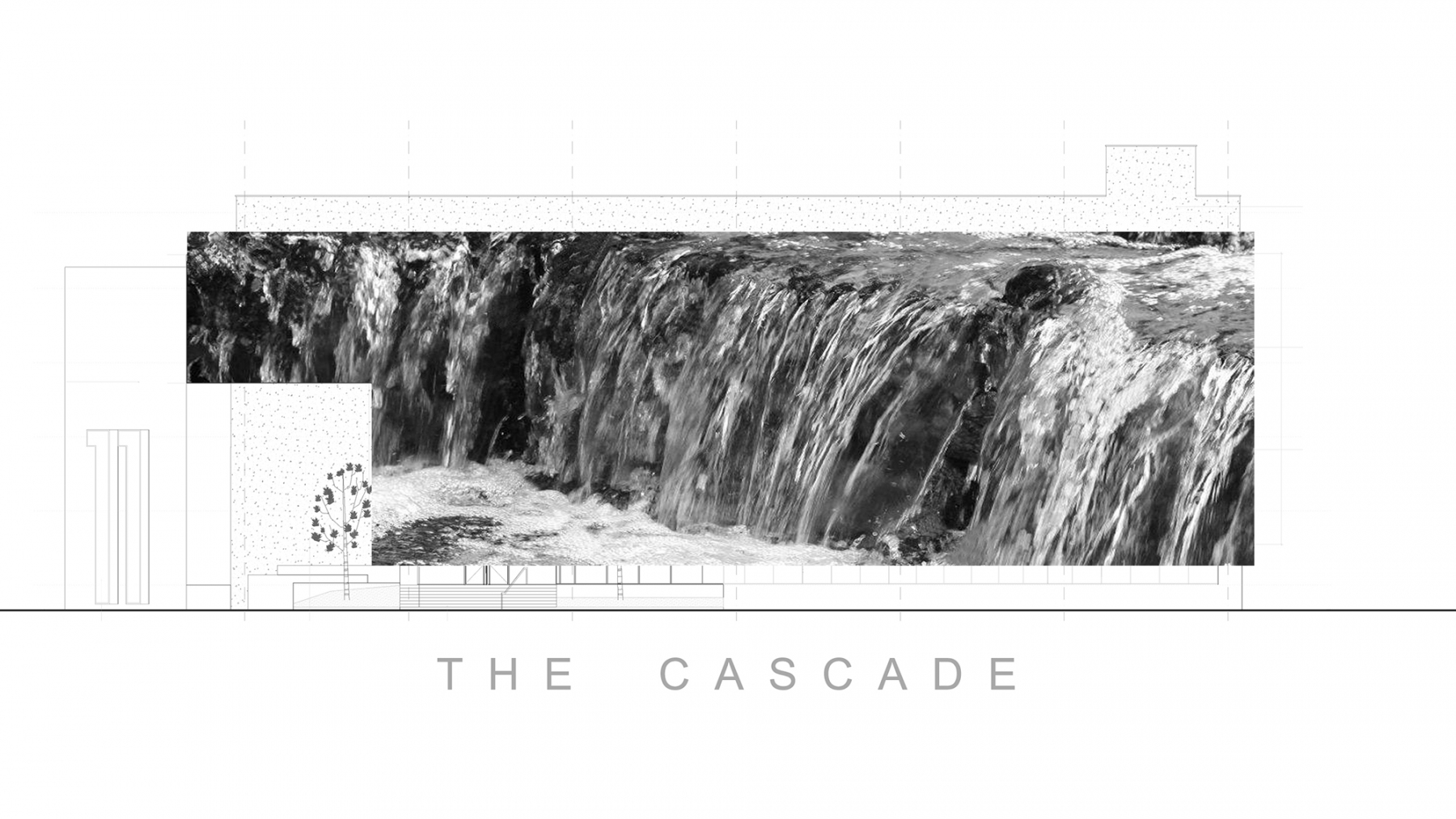 the essence of this transformation is captured in the interplay between two distinct elements: the abstract, two-dimensional texture of the “waterfall” and the overlapping architectural planes that shift across various levels and perspectives. the façade expresses a dynamic contrast—the raw plaster, evoking the mineral essence of nature, juxtaposed with the high-tech sophistication of water’s abstractly textured glass.