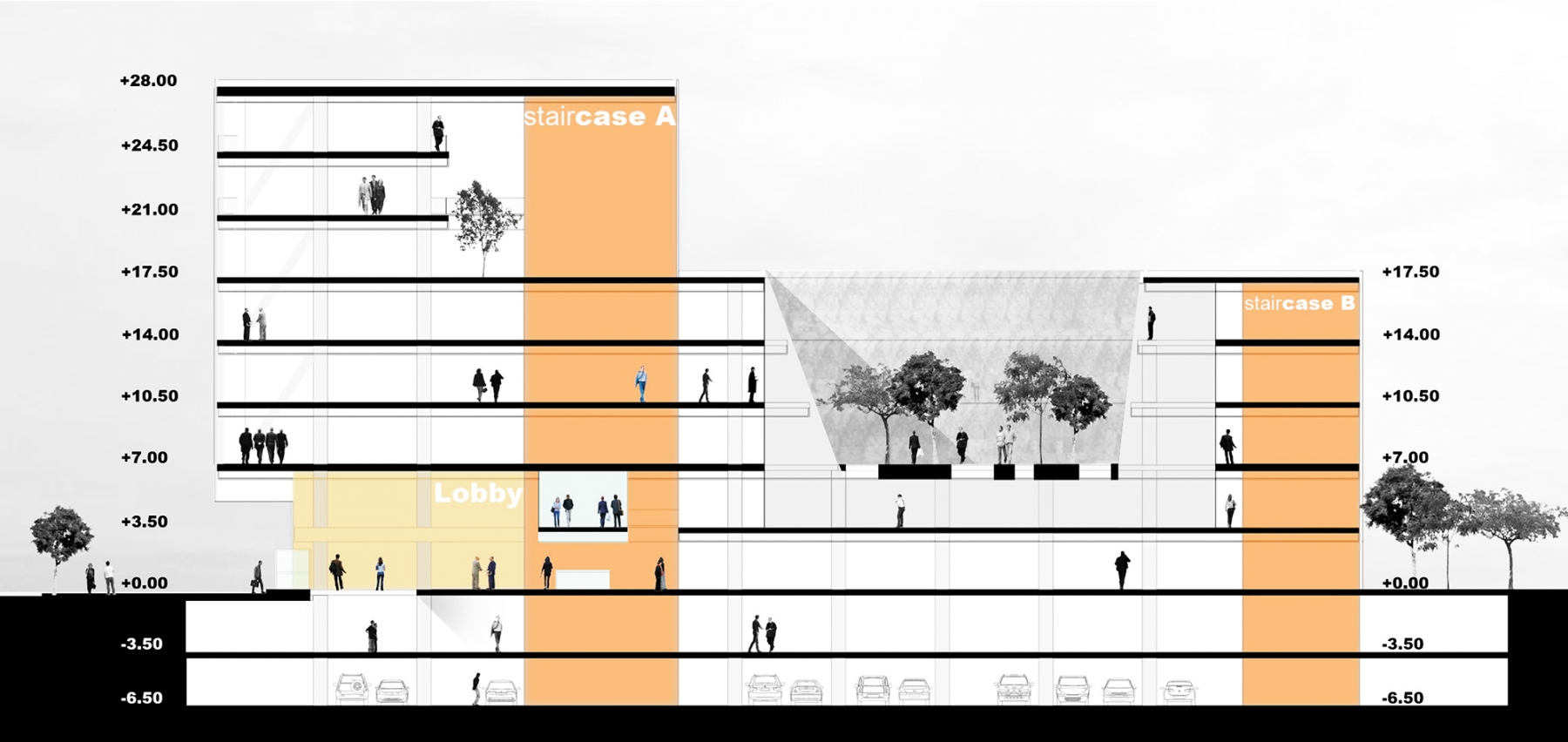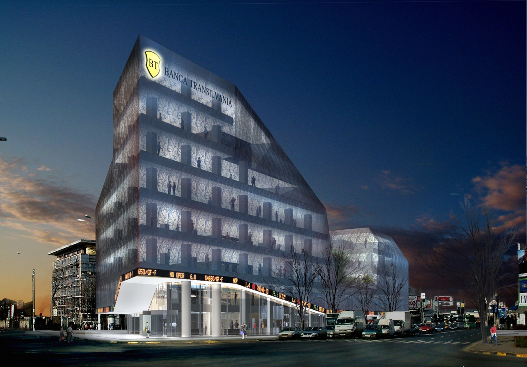 with the formal dynamism and textural novelty of its curtain wall, this signal object located at the entrance of Bucharest, creates a powerful virtual impact offering a representative image to the client.